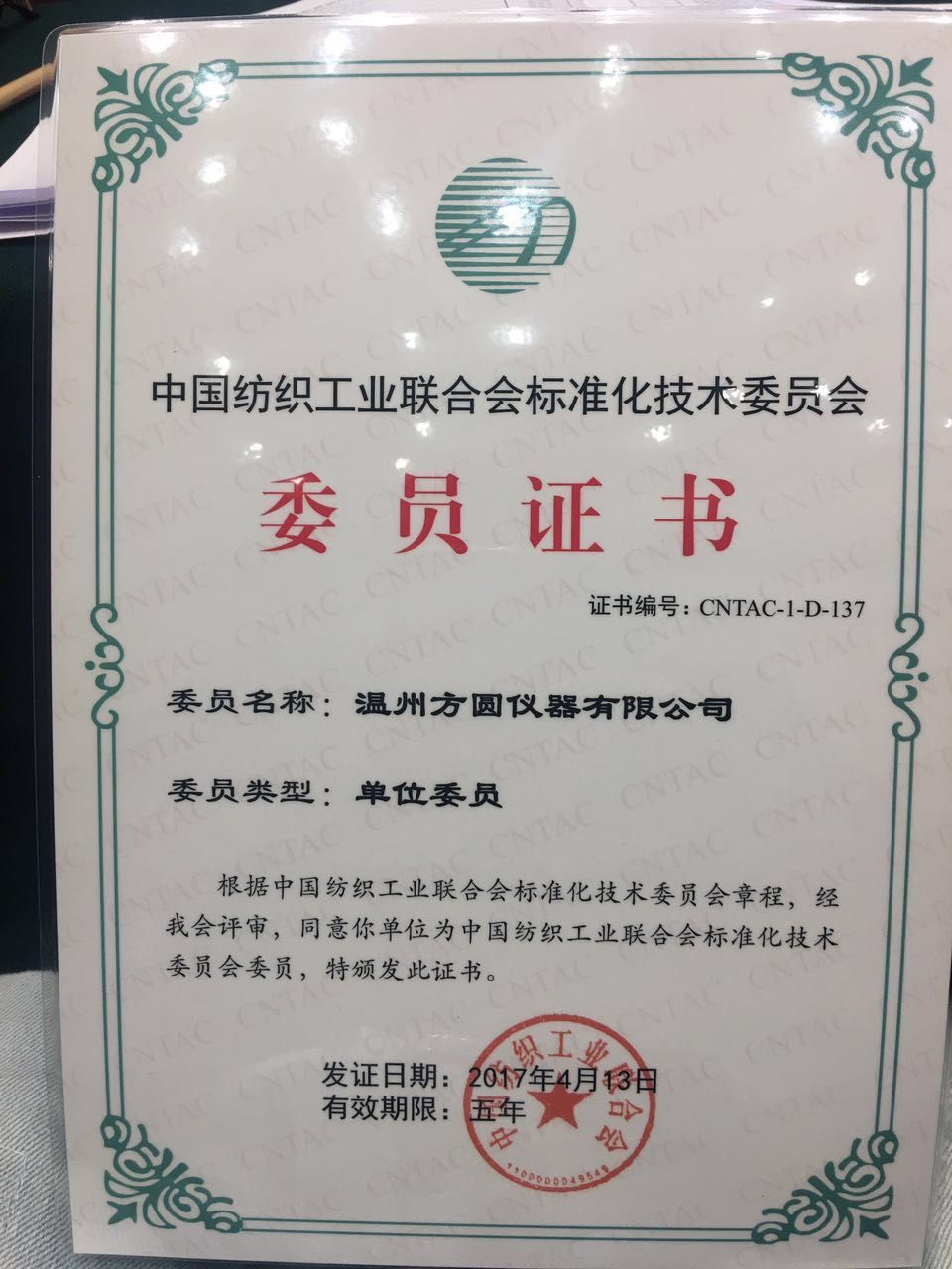 祝賀溫州方圓儀器有限公司成為中紡聯標準化技術委員會委員單位